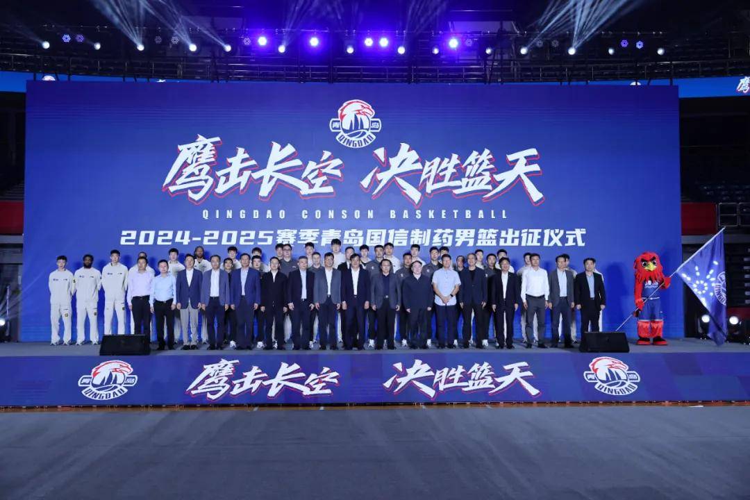 0月9日上午,青岛国信制药男篮2024-2025赛季出征仪式在主场地国信体育馆举行。满载希望与祝福,青岛国信制药男篮即将踏上新赛季CBA联赛的征程。