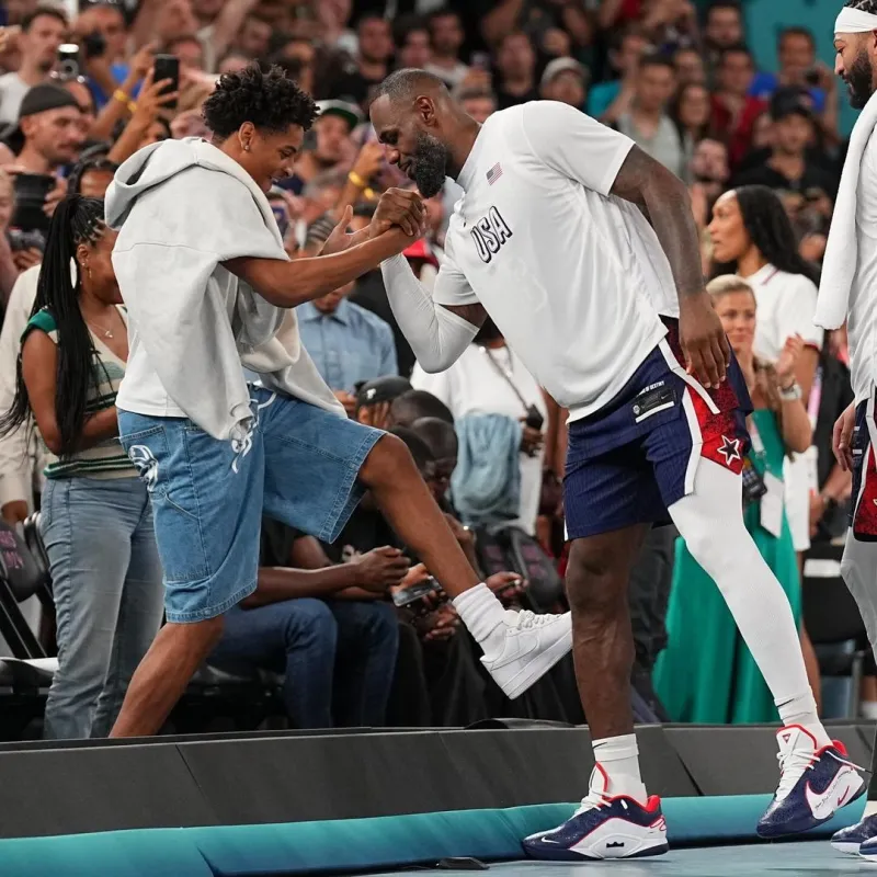 08月08日讯 今日,NBA总裁亚当-肖华更新Instagram,晒出一组美国男篮vs巴西的奥运会四分之一决赛花絮照。包括勒布朗-詹姆斯与卡梅罗-安东尼父子的互动,德维恩-韦德的场边互动等场景。