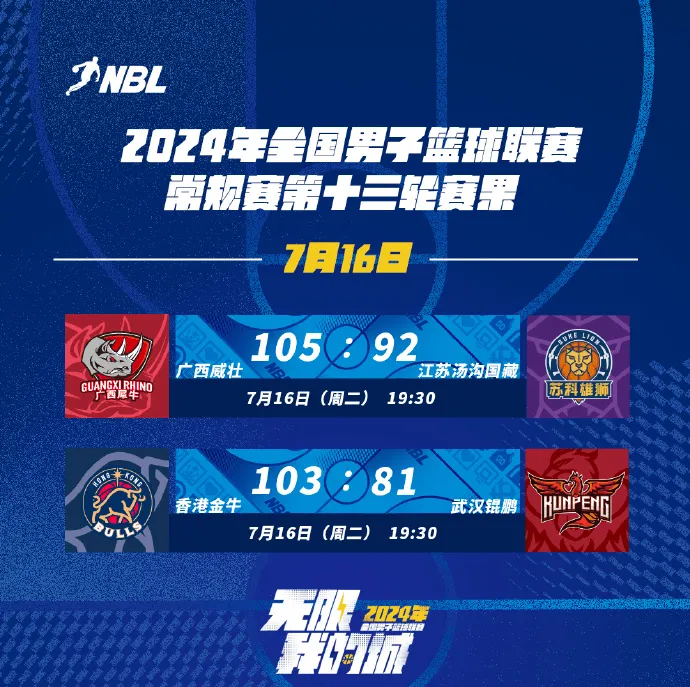 7月16日讯2024年NBL联赛常规赛第十三轮已于今日结束。