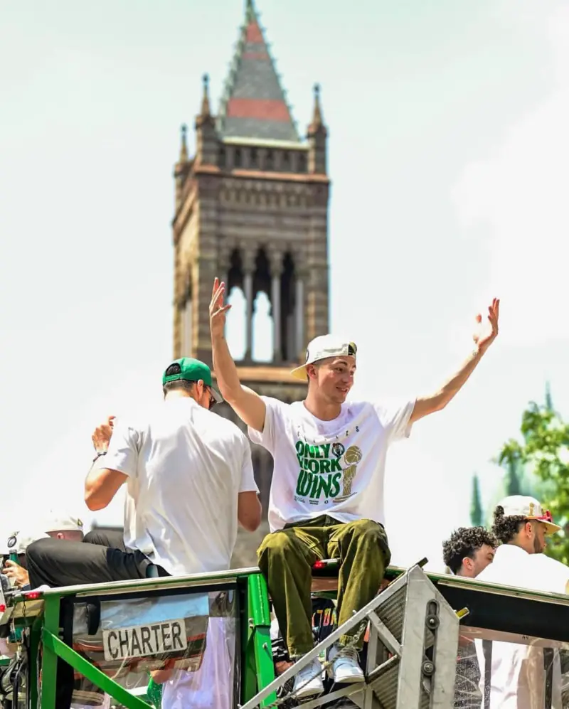 6月22日,凯尔特人球员佩顿·普里查德更新了自己的Instagram,晒出了一张冠军游行的照片与球迷分享。