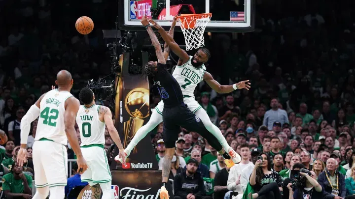 6月9日,凯尔特人队球员杰伦·布朗接受媒体采访,谈到对阵小牛队的防守。
