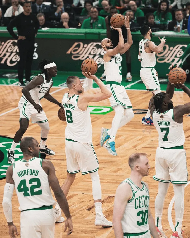 6月9日,凯尔特人队更新官方社交媒体,透露上一场比赛全队共有7名球员命中2+三分球。这也是第一支在总决赛中实现这一成绩的球队。