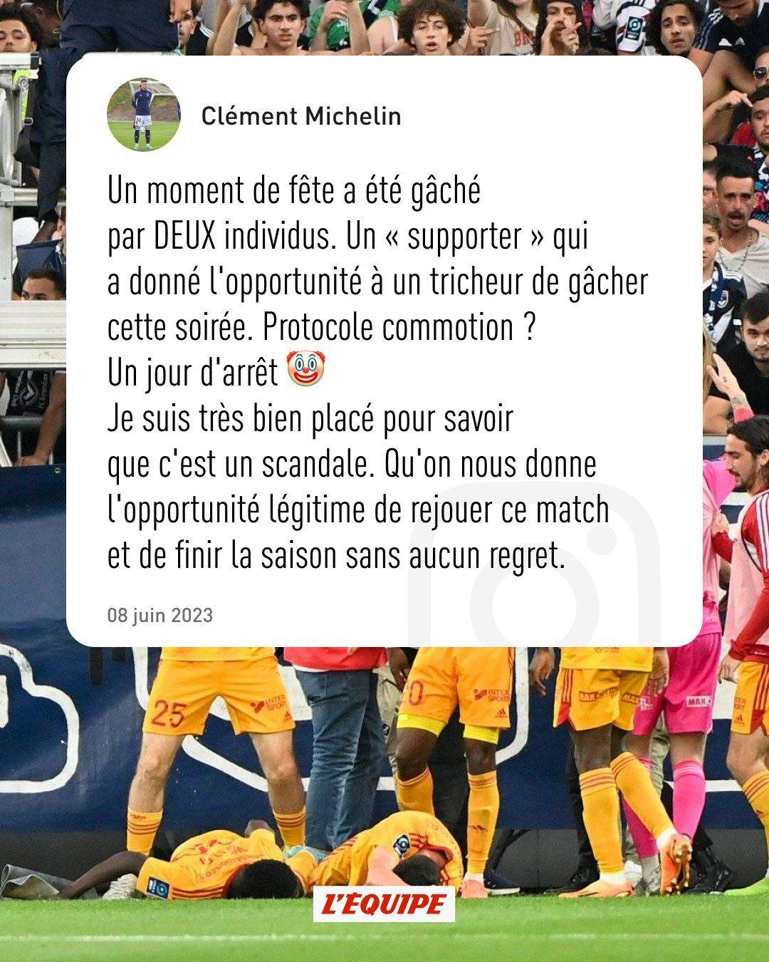 波尔多队右后卫米其林在谈到球队对阵罗德兹的比赛因“意外事件”而被缩短时,在社交媒体上公开表示,“这确实是一个丑闻”,并点名了其中一个当事人。罗德兹球员卢卡斯·布亚德斯被描述为骗子。观察你的对手升级!波尔多球员愤怒地谴责对手是骗子 不重赛是一种丑闻