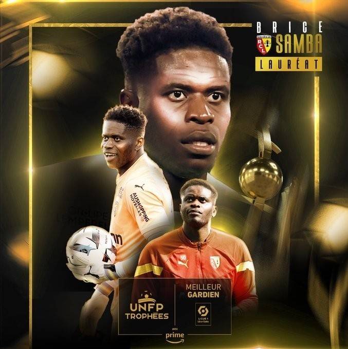 镭速体育5月29日讯:UNFP(法国职业球员工会)宣布朗斯门将桑巴当选22-23赛季法甲最佳门将。
