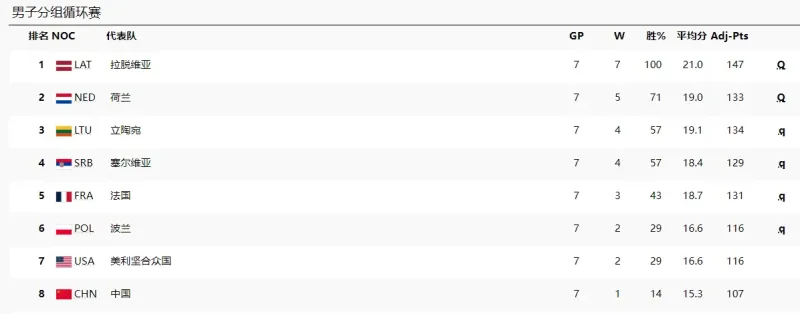值得一提的是,拉脱维亚在小组循环赛未尝败绩,7胜0负,场场打爆比分,7场比赛得到150分(三场得到22分)。