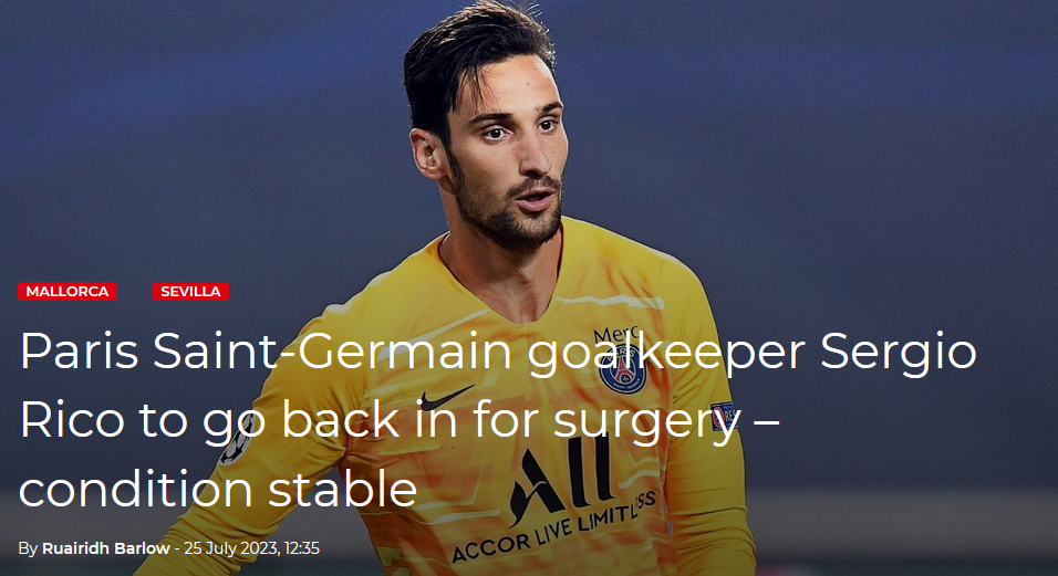 这位29岁的门将在接受动脉瘤手术后状态良好,但显然任何手术都存在风险。总体而言,Rico 的康复进展顺利。
