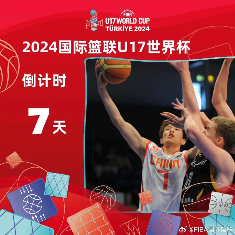 6月22日消息国际篮联官方分享U17世界杯倒计时海报。